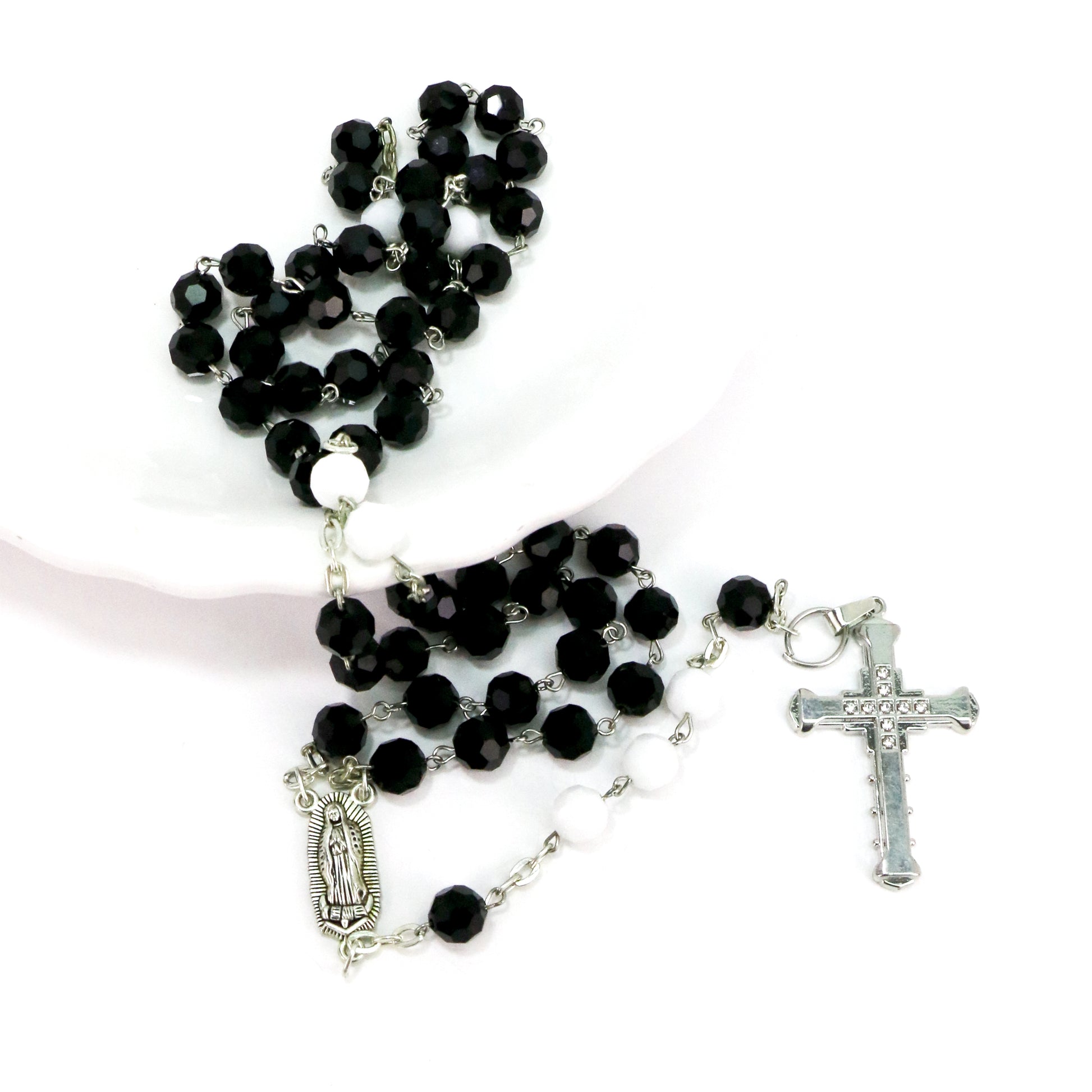 Découvrez ce magnifique chapelet fait à la main, conçu avec soin pour allier beauté et spiritualité. Composé de billes noires et blanches, il se distingue par son élégance. Le pendentif avec une grande croix argentée ajoute une touche originale à l'ensemble. Ce chapelet est grand et contient une moyenne croix.