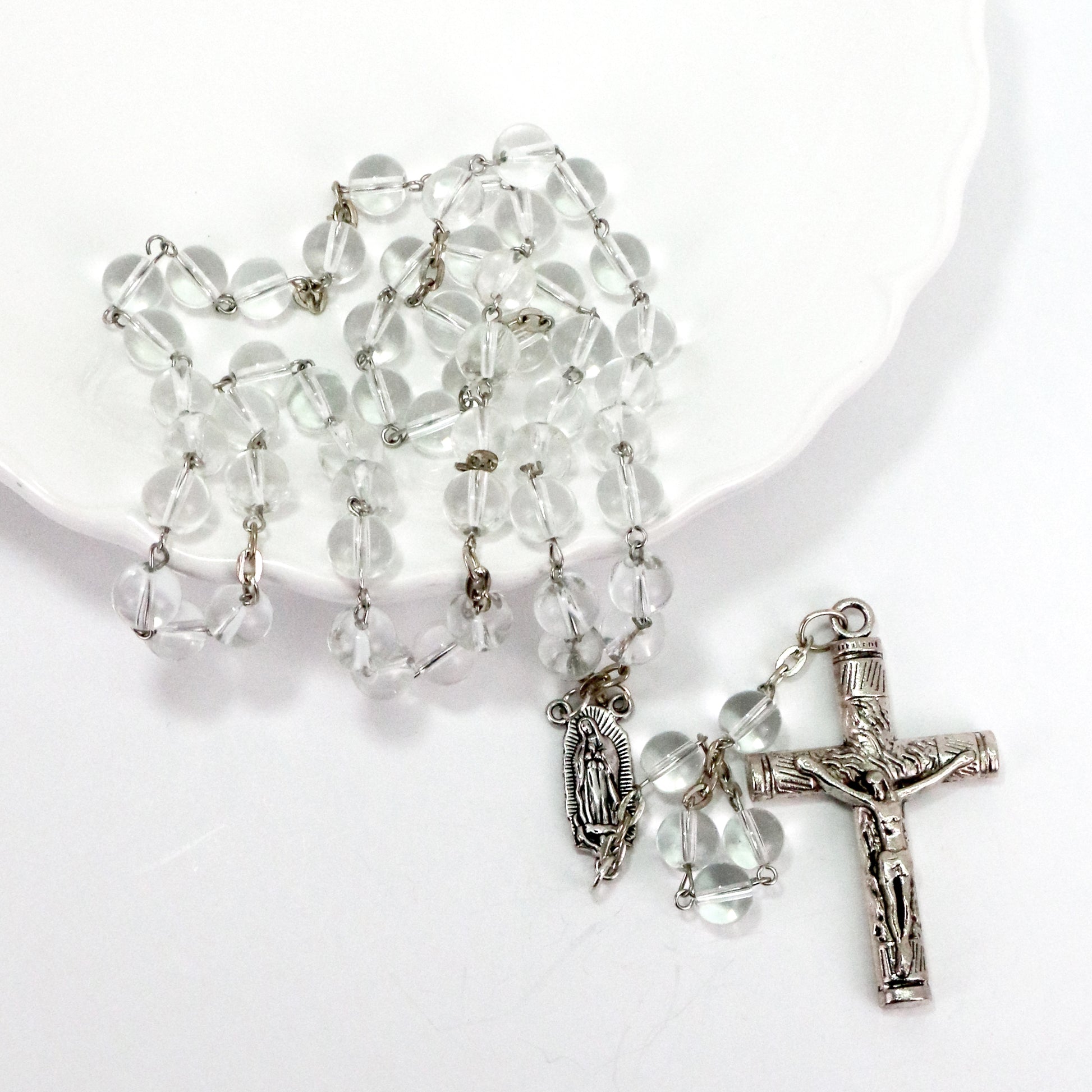 Découvrez ce magnifique chapelet fait à la main, conçu avec soin pour allier beauté et spiritualité. Composé de grosses billes translucides il se distingue par son élégance. Le pendentif avec une grande croix argentée ornée du Christ ajoute une touche originale à l'ensemble. Ce chapelet est grand et contient une grande croix.